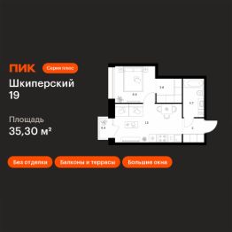 Продаётся 1-комн. квартира площадью 35,3 кв.м на 12 этаже 12 этажного дома (Корпус 2, Секция 5) проекта ПИК Шкиперский 19. Светлый просторный подъезд на уровне земли, функциональная планировка, большие окна, без отделки.