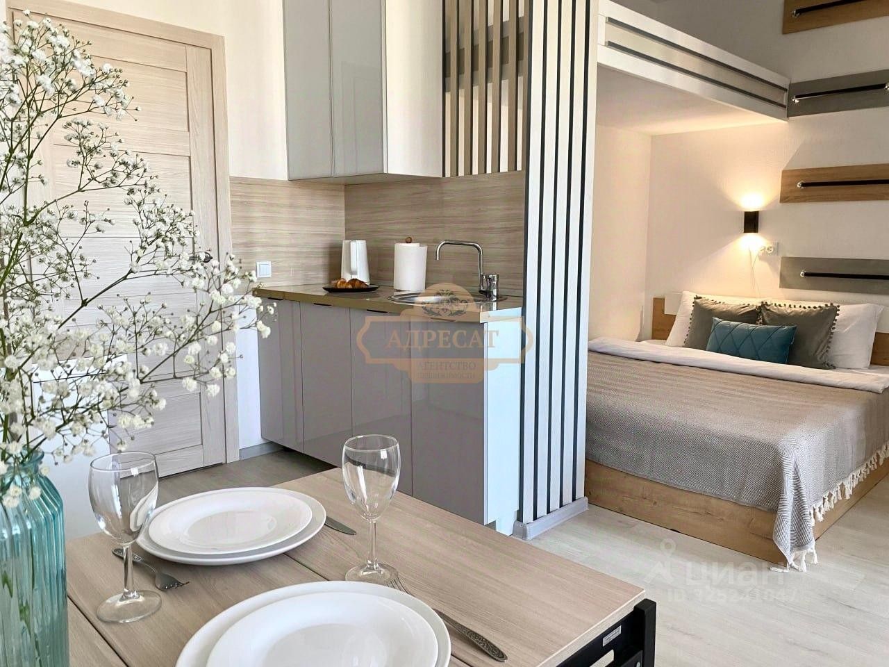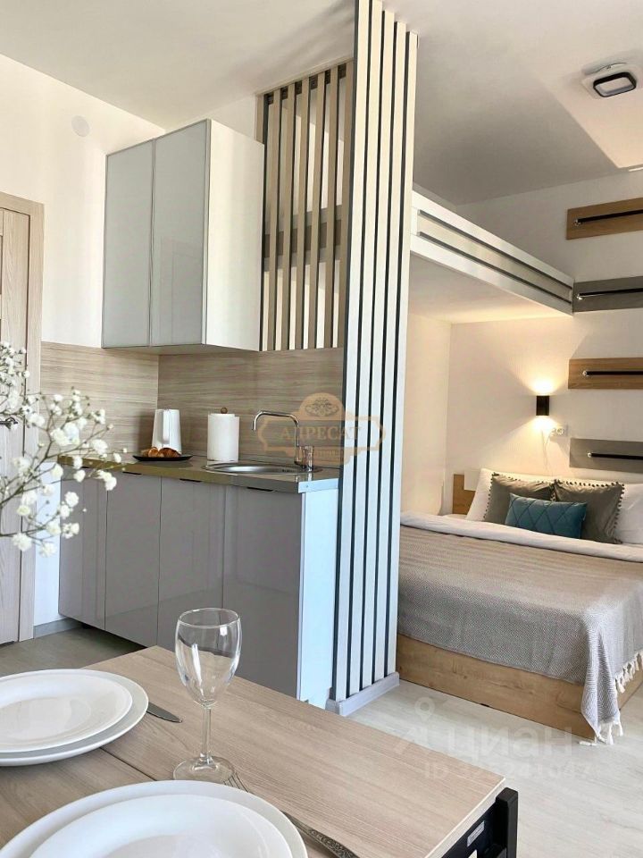 О квартире: общ площадь 24,7 кв.м, площадь комнаты с кухней 17,7 кв.м., совмещенный санузел 3,1 кв. м., прихожая 3,0 кв. м., лоджия 2,6 кв.м. Высота потолка 2,75 м. Квартира расположена на 5 этаже 11-этажного дома.