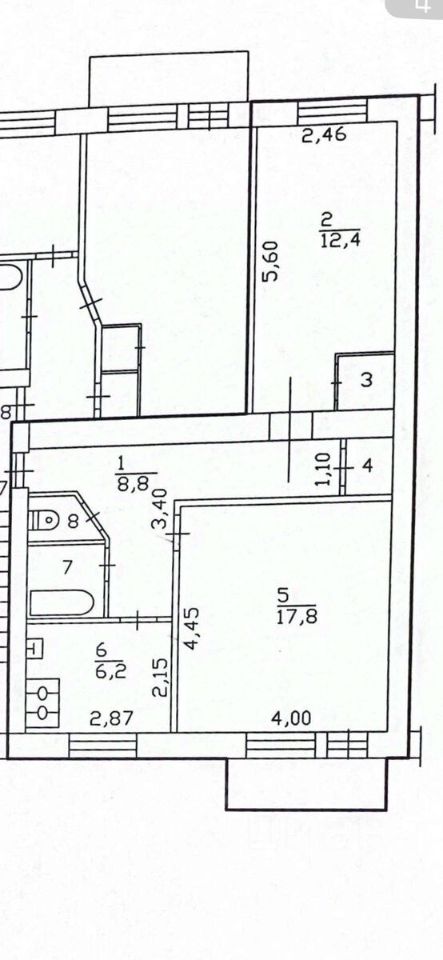 состоит из двух изолированных комнат 17.8+13.8, разделённых длинным коридором, есть кладовка,