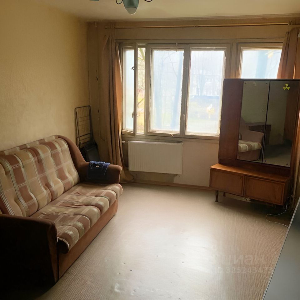 Комната самая большая в квартире, теплая, требует ремонта, однако есть все необходимое для проживания: диван-кровать, 3х створчатый шкаф, прикроватные тумбочки, бельевая тумба, зеркало.