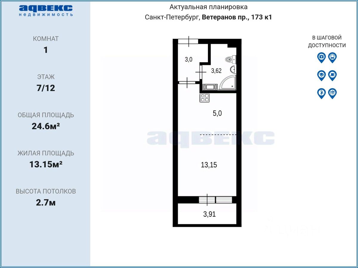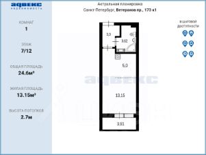 Продается студия с лоджией и мебелью в ЖК"Солнечный город" на проспекте Ветеранов.