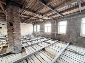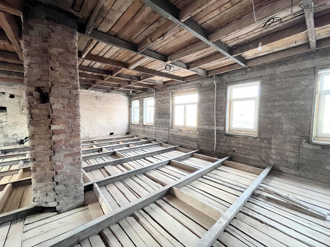 Перекрытия - металлический двутавр с деревянным заполнением.