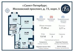 Общая площадь без учёта лоджии 71,5 кв.м.