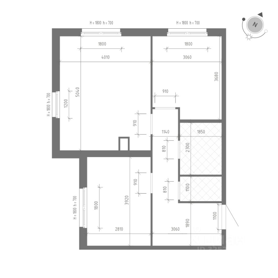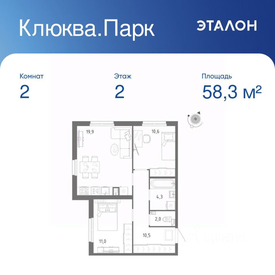 Общая площадь квартиры — 58.3 кв. м, этаж 2 из 12.