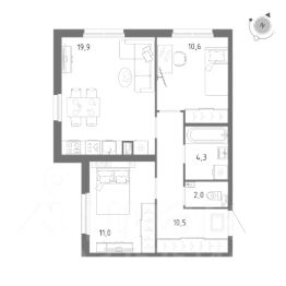Продается 2-к квартира без отделки в ЖК "Клюква.Парк".