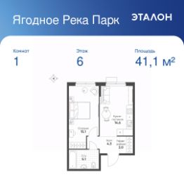 Общая площадь квартиры — 41.1 кв. м, этаж 6 из 12.