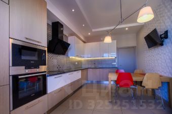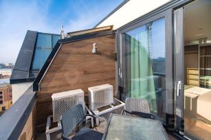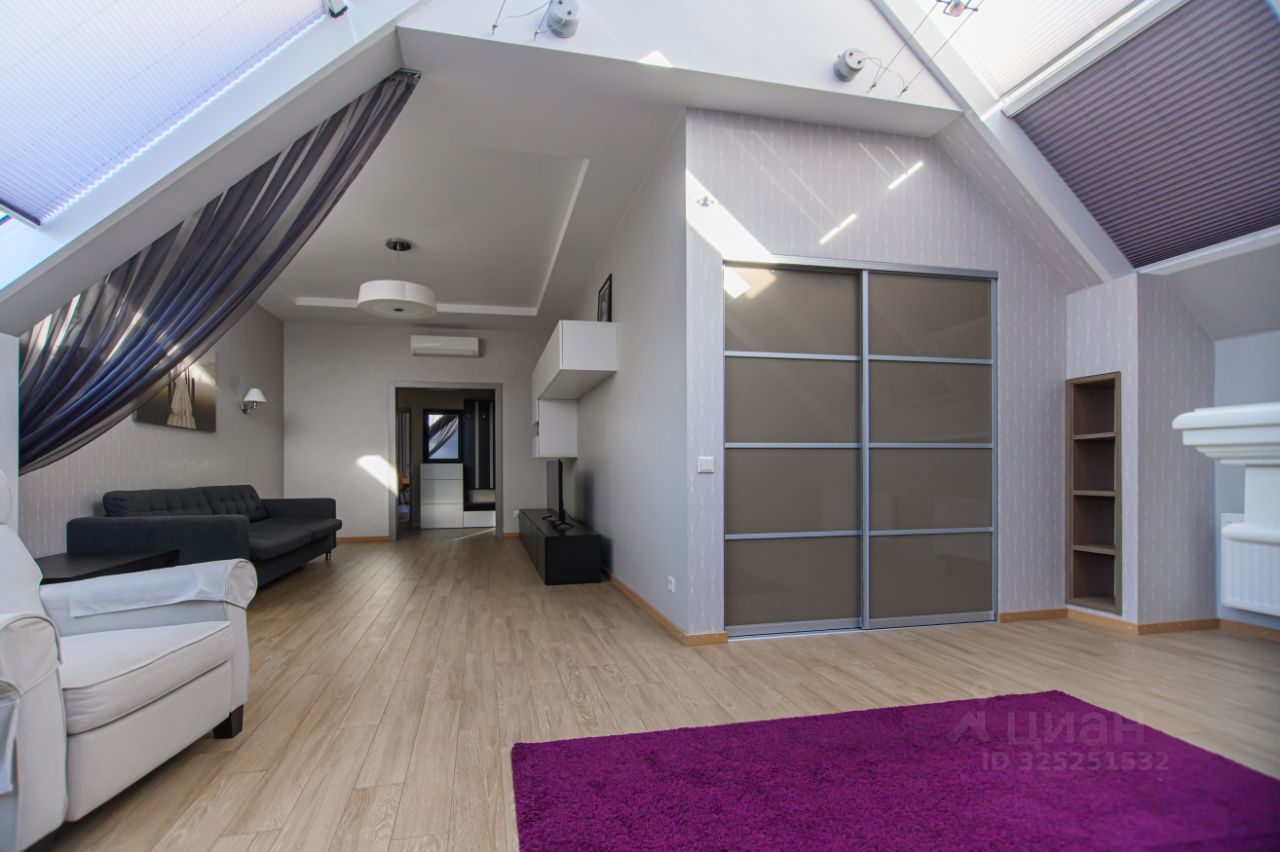 Общая площадь составляет 101,1 кв. м. Установлены кондиционеры и необходимая современная бытовая техника. По планировке: гостиная с мансардным потолком и камином; выделенная кухня с выходом на балкон, две изолированные спальни, в одной из которых выход на балкон, два санузла, гардеробная.