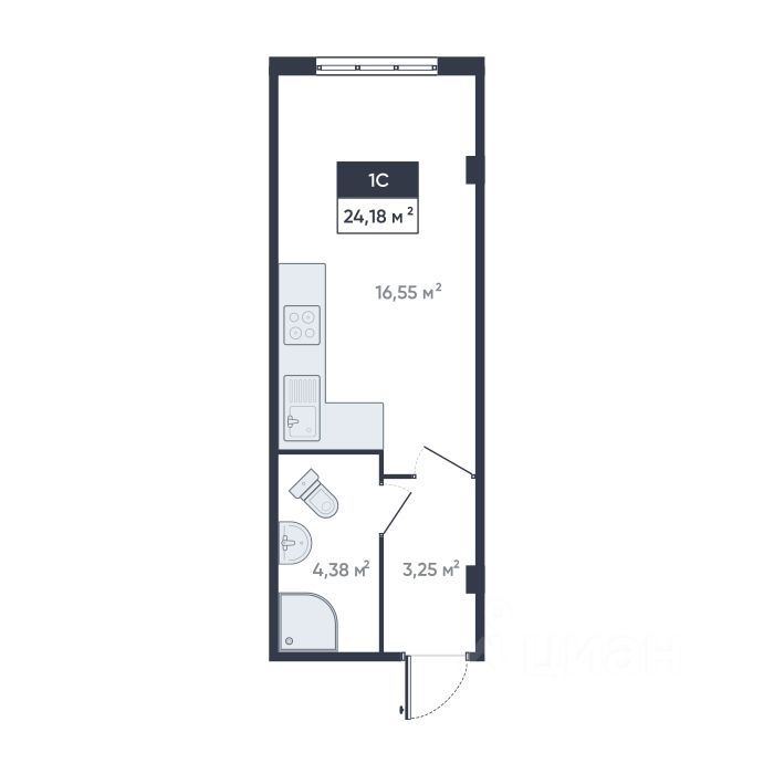 Продаётся студия 23.8 кв. м на 1 этаже в сданном корпусе ЖК "Ромашки". Квартира без отделки — отличный вариант, чтобы сделать ремонт по своему вкусу. Дом уже сдан и заселен, можно сразу приступать к работам.