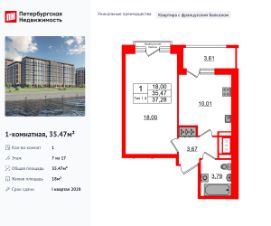 Уникальная планировка, кухня 10.01 м², вместительная прихожая 3.67 м². Общая площадь квартиры - 35.47 м², жилая 18 м², высота потолка 2.77 м.