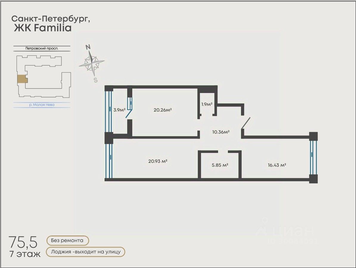 Арт. 128033527 Видовая двухкомнатная квартира в жилом комплексе премиум -класса "Familiа" в престижнейшей локации Петровский остров.