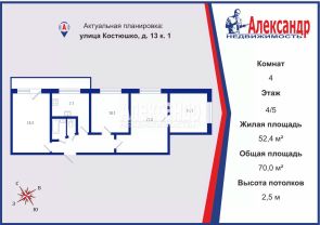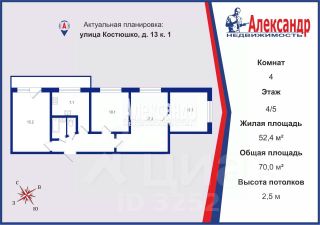 1705388 Продам 4-х комнатную квартиру 70 кв.м. в Московском районе.