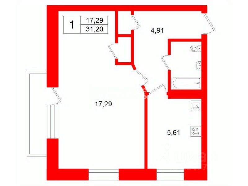 Мебель в квартире отсутствует, что позволит вам обустроить пространство под себя.