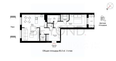 Двухсторонняя ориентация окон обеспечивает отличную естественную освещённость: просторная кухня-гостиная и зона отдыха наполнены светом, при этом мастер-спальня остаётся максимально приватной и тихой.