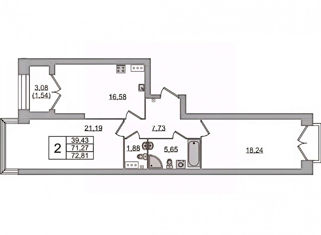 высота потолков: 2,72 м;