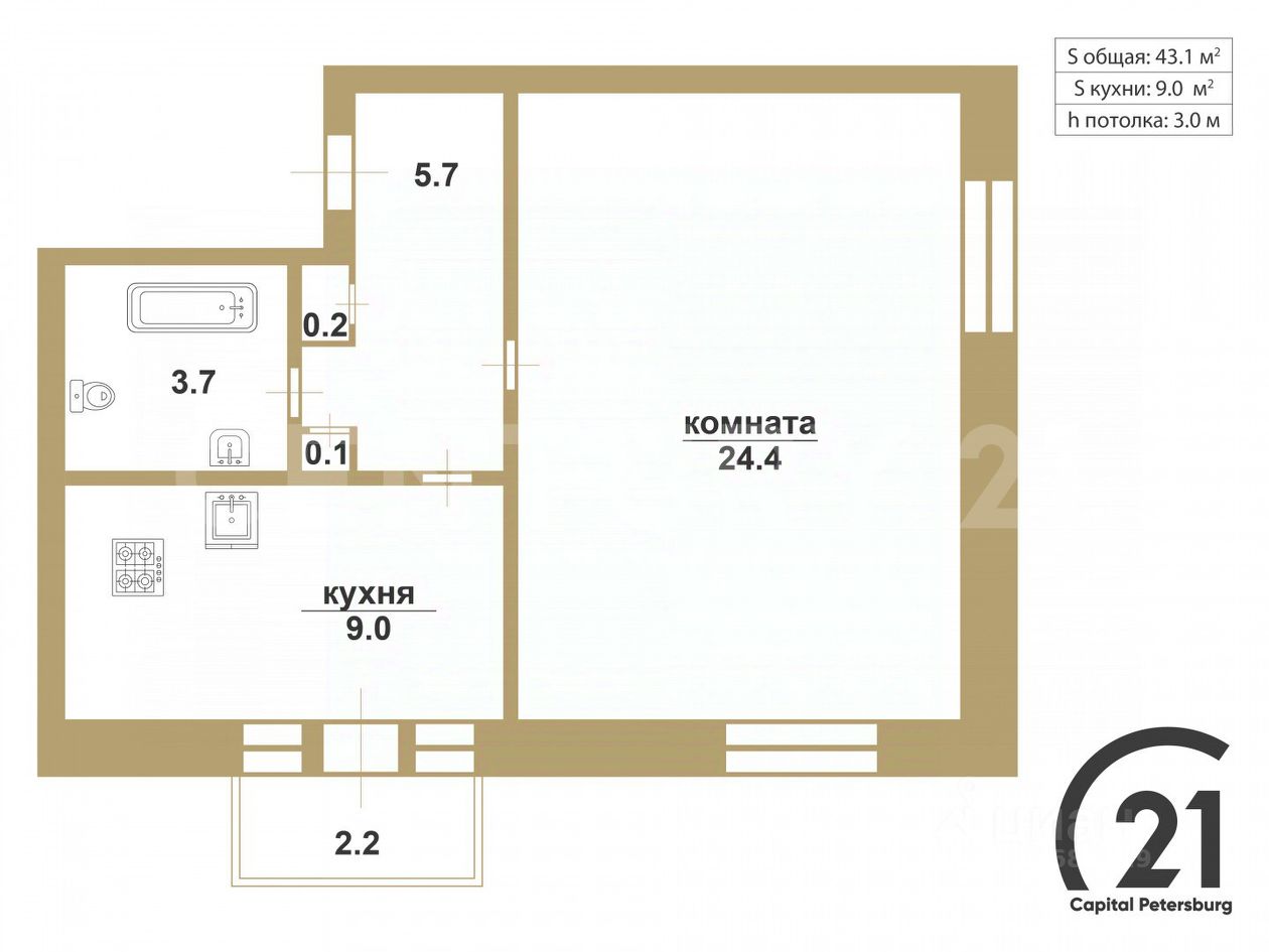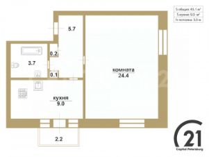 Комната площадью 24,4 м имеет два окна, выходящих на разные стороны, что обеспечивает хорошее естественное освещение.