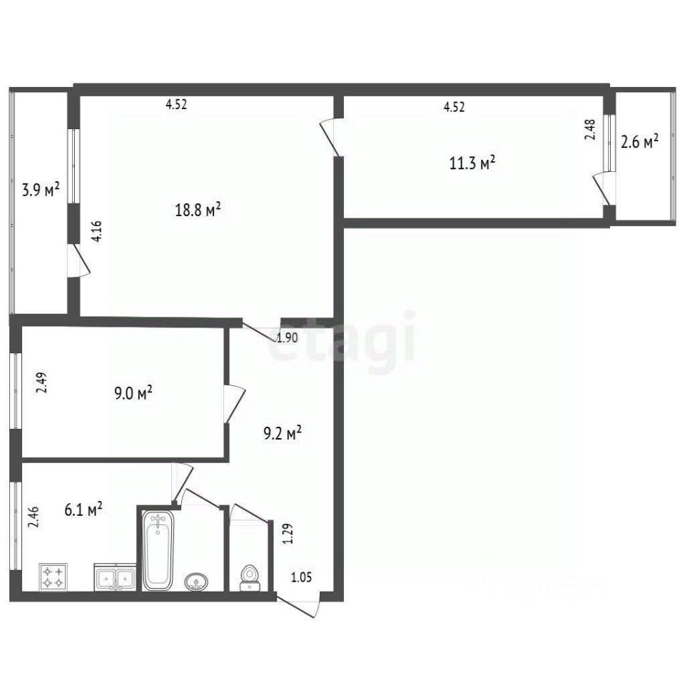 Гостиная: 18.8кв.м. лоджия: 3,9кв.м.
