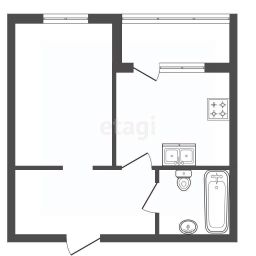 Совмещенный санузел и лоджия дополняют функциональность квартиры.