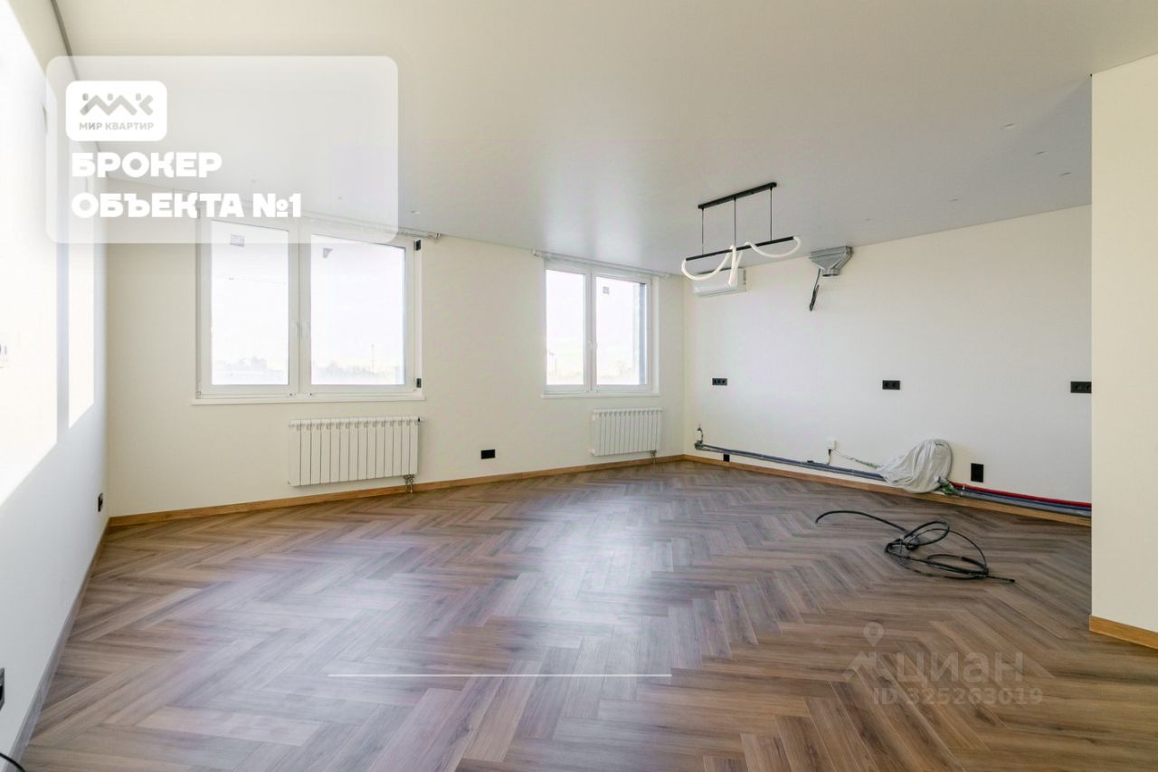 Квартира расположена на 5 этаже 19-ти этажного дома, просторная планировка предусматривает две спальные комнаты, 20 кв м и 17 кв.м., кухню-гостиную 46 кв м, санузел 2.56 кв.м., ванную комнату 3,9 кв.м., лоджию 7,6 кв.м.