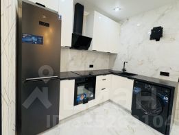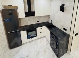 Установлен кухонный гарнитур, варочная панель, духовой шкаф, холодильник, обеденный стол со стульями, диван, шкаф, телевизор, стиральная машина.
