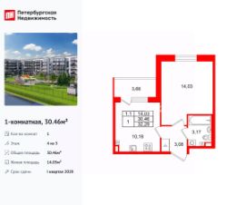 Удобная, классическая планировка, кухня 10.18 м², вместительная прихожая 3.08 м². Общая площадь квартиры - 30.46 м², жилая 14.03 м², высота потолка 2.77 м.