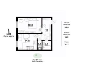 Общая площадь 49,6 кв.м.;