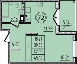 Общая площадь39,56 м²