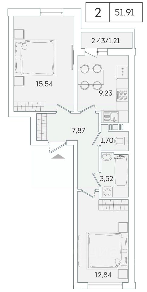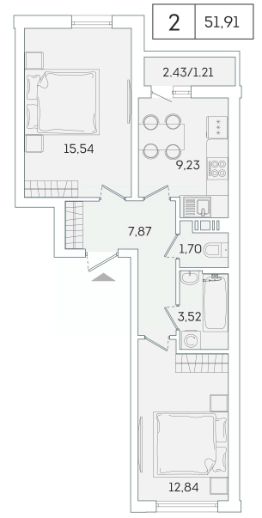 В продаже от застройщика 2 комнатная квартира 50.5 кв. м с черновой отделкой и практичной планировкой для удобной организации пространства. Корпус сдан, идет выдача ключей.