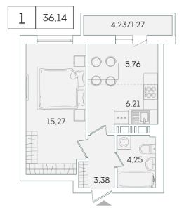 В продаже от застройщика 1 комнатная квартира 35 кв. м с черновой отделкой и практичной планировкой для удобной организации пространства. Корпус сдан, идет выдача ключей.