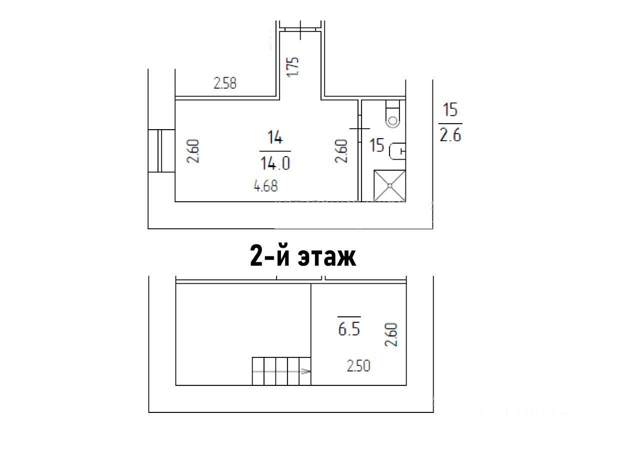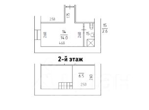 Студия двухэтажная. Общая площадь студии 23 кв.м, 1-й этаж 16,5 кв.м, 2-й этаж (антресоль высотой 1м) 6,5 кв.м. Окно со стеклопакетом смотрит в большой зеленый двор. В студии оборудован совмещенный санузел, место под кухню.