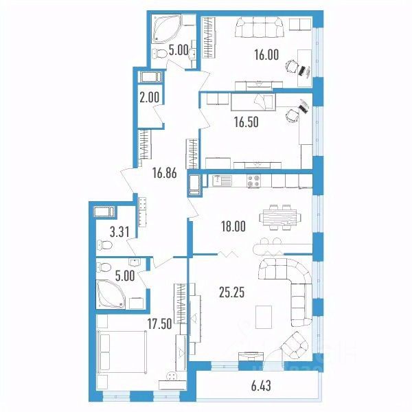 Продаётся 4-комнатная квартира в сданном доме (Головнина, 3к1), срок сдачи: II-кв. 2023, общей площадью 128.1 кв.м., на 11 этаже.