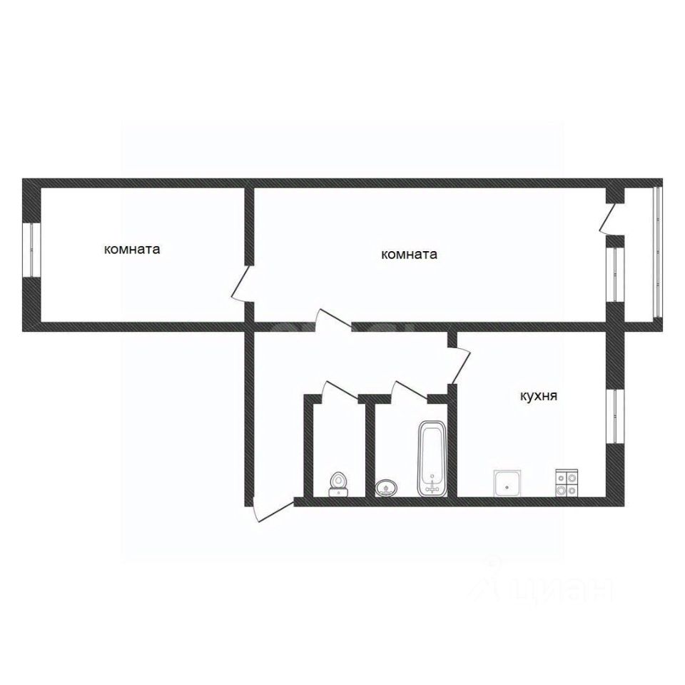 Планировка квартиры функциональна и включает две изолированные комнаты площадью 14 и 17 кв. м, что обеспечивает комфортное проживание для семьи или личное пространство для каждого. Кухня размером 5.5 кв. м является практичным помещением для приготовления пищи.