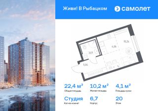 Строим кварталы для жизни с заботой о будущем. Предлагается квартира студия комфорт-класса 22,41 кв.м в корпусе 6,7 на 20 этаже, в ЖК "Живи! В Рыбацком"