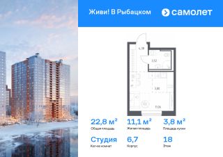 Строим кварталы для жизни с заботой о будущем. Предлагается квартира студия комфорт-класса 22,76 кв.м в корпусе 6,7 на 18 этаже, в ЖК "Живи! В Рыбацком"