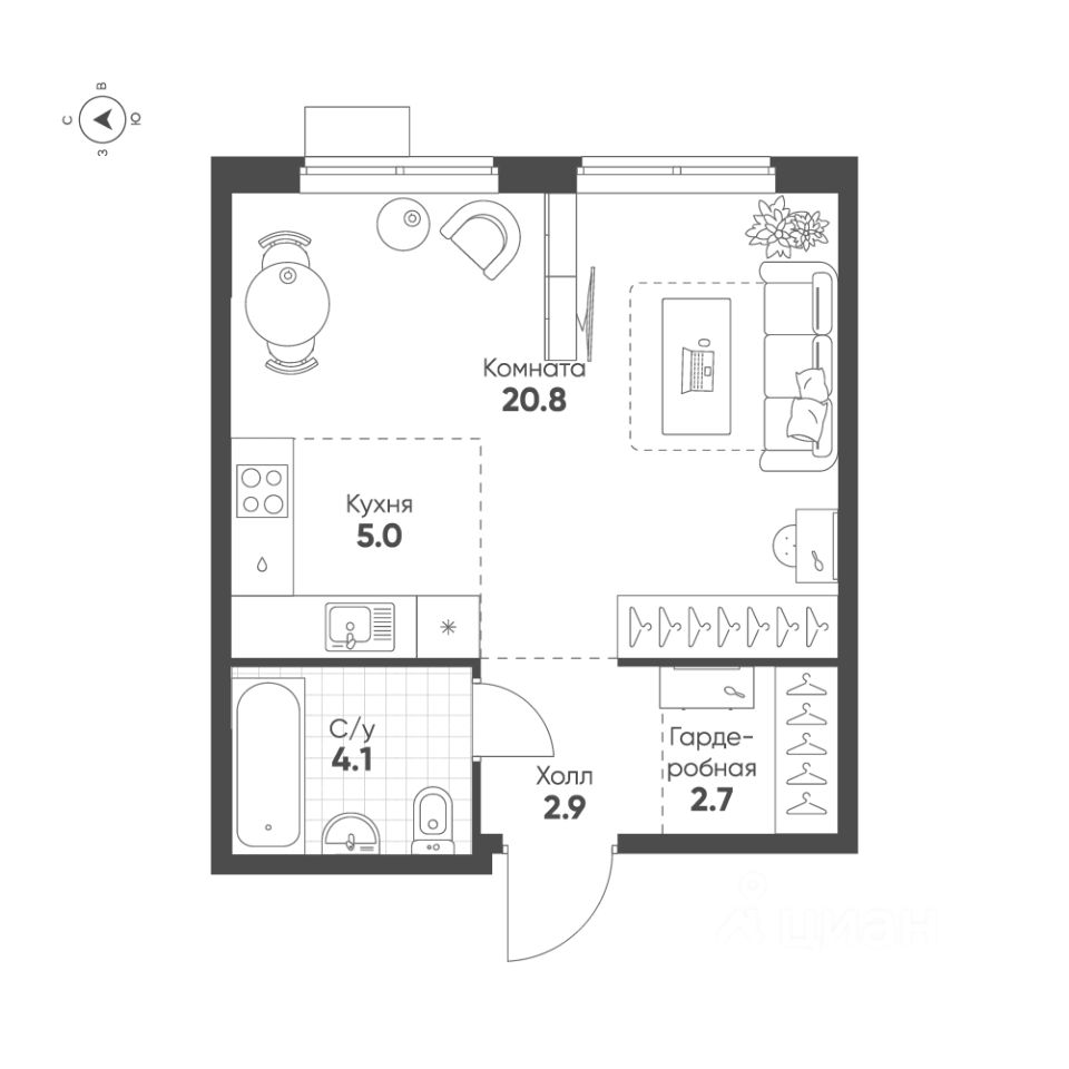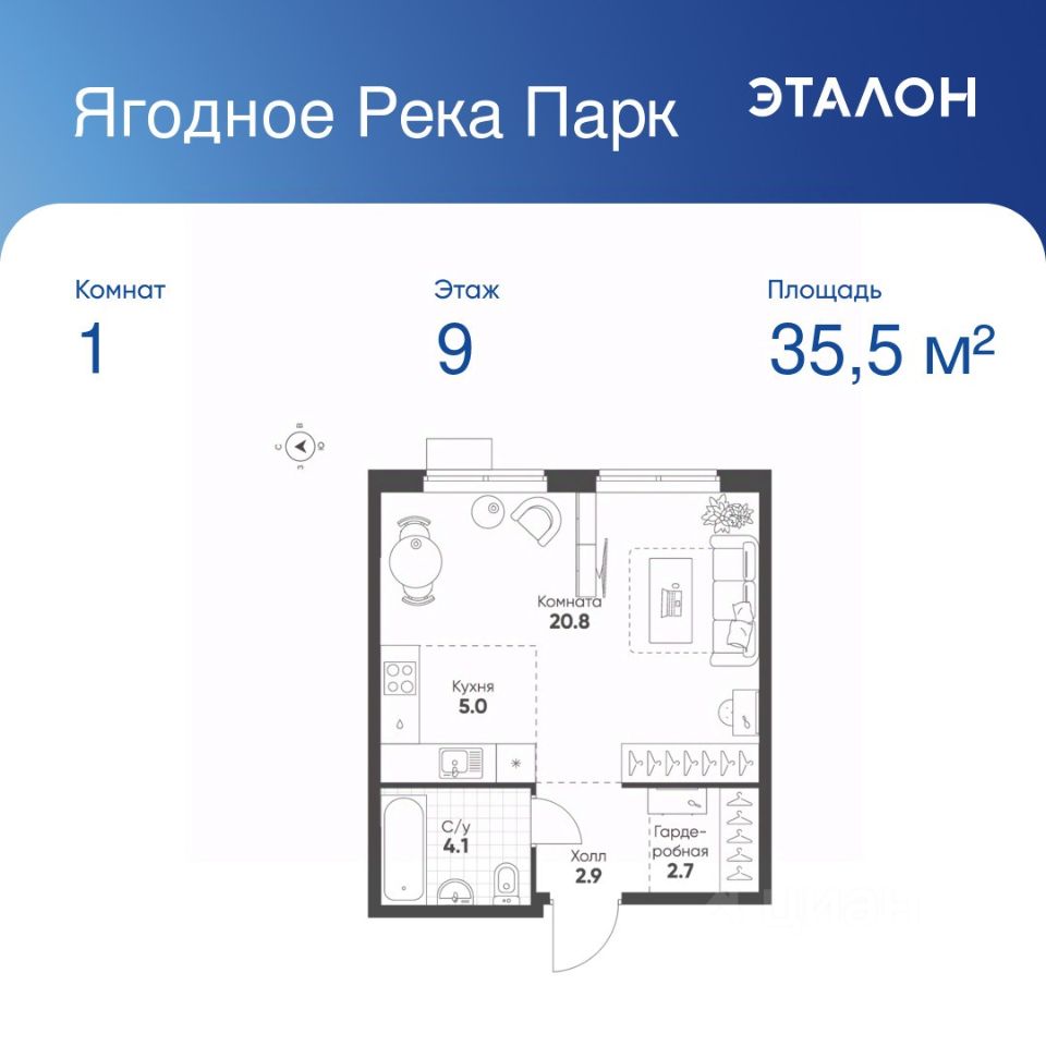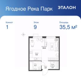 Общая площадь квартиры — 35.5 кв. м, этаж 9 из 12.