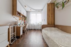 Прихожая оборудована вместительной встроенной гардеробной, обеспечивающей дополнительное место для хранения вещей