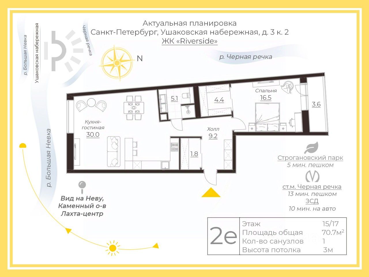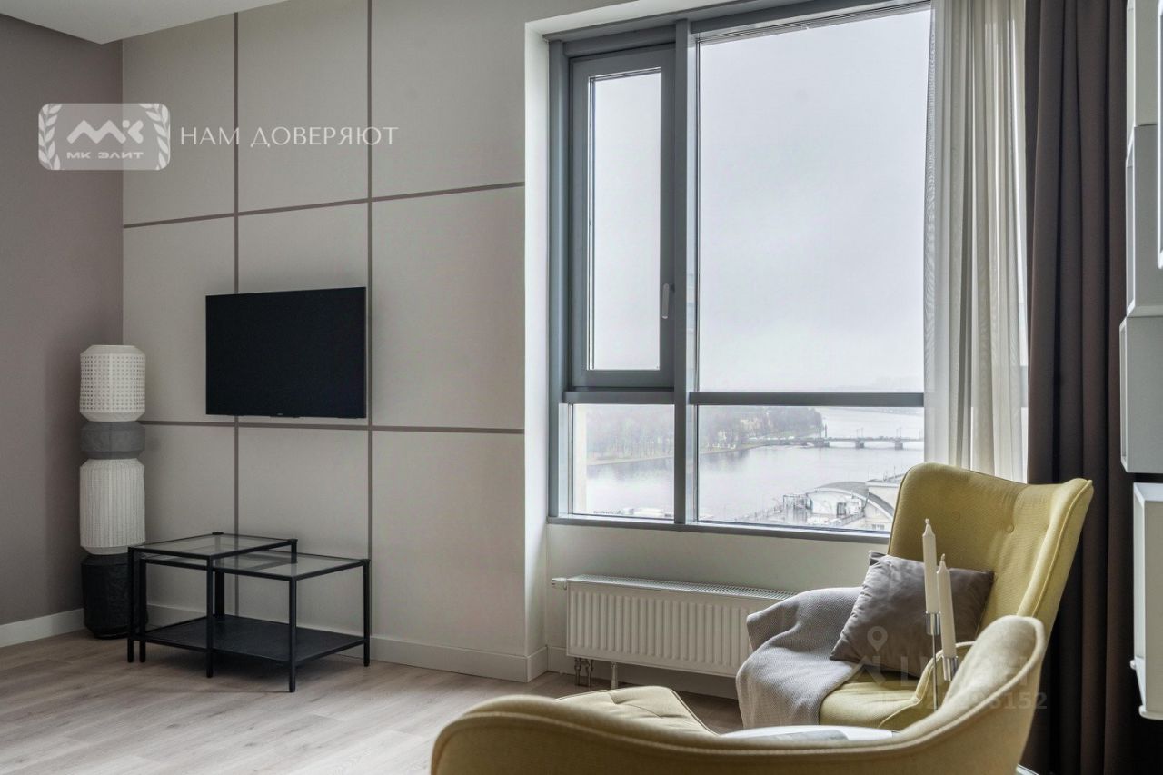Зайдя в квартиру Вы увидите просторную прихожую с закрытой системой хранения. Далее Вы окажитесь в кухне-гостиной с выделенной обеденной зоной, а также с зоной отдыха, где находится панорамное окно, из которого открывается шикарный вид на Неву, Каменный остров, Зенит Арену и Лахта-Центр. После чего Вы зайдете в спальню, в которой находится просторная гардеробная с лоджией.