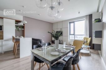 В квартире сделан дизайнерский, качественный ремонт, всё продумано до мелочей, и каждая зона и деталь тому подтверждение.