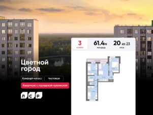 Продается 3-комнатная квартира в ЖК "Цветной город" на 20 этаже. Общая площадь составляет 61.40 кв. м. Квартира с чистовой отделкой Срок сдачи дома: 4 квартал 2025. Жилой комплекс "Цветной город" располагается по адресу Санкт-Петербург, Красногвардейский.
