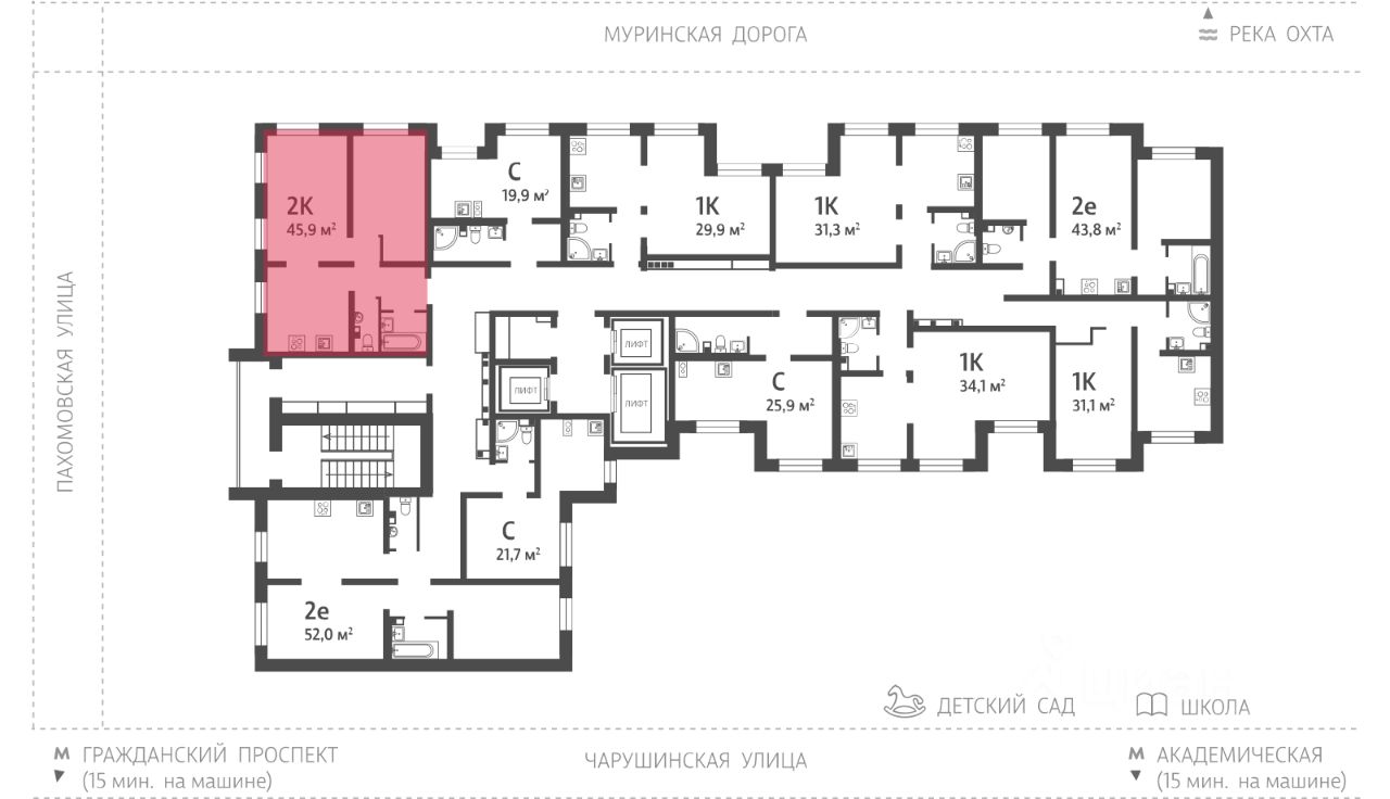 • 15 минут на авто до станций "Гражданский проспект" и "Академическая";