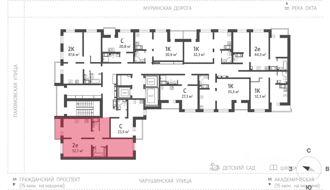 • 15 минут на авто до станций "Гражданский проспект" и "Академическая";