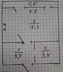 Площадь комнаты 18.1 кв. М, прихожая 3.5 кв. М, туалетная комната с ванной 3,5 кв. М. Есть лоджия 5.3 кв. М.