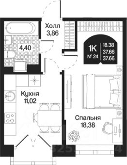 1к квартира 37,7 м² c White box отделкой в беспроцентную рассрочку с ценой ниже, чем у застройщика на 500.000. Квартиру можно купить за 1,5 млн ₽!