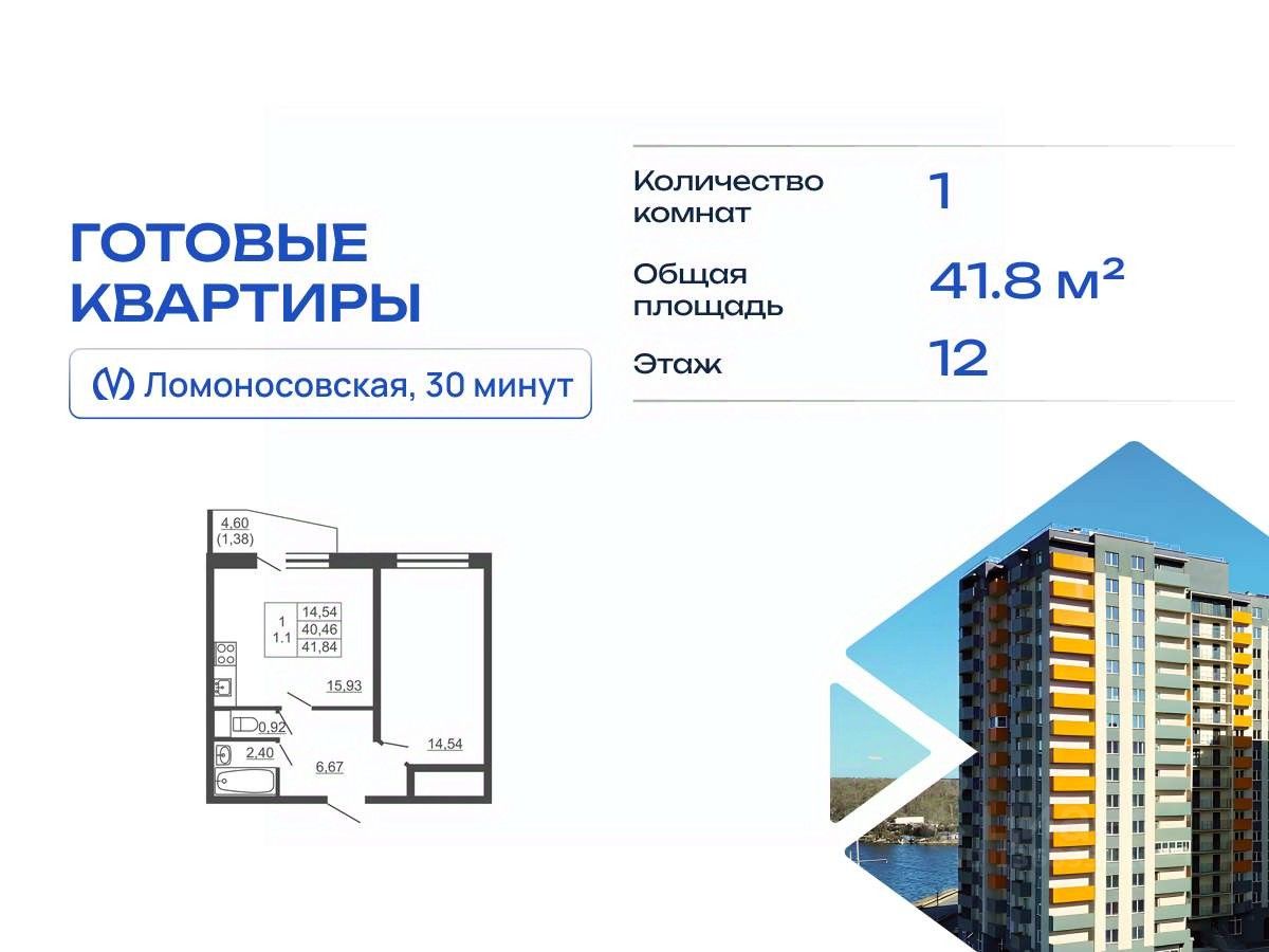 Продается однокомнатная квартира в жилом комплексе "Тандем" от ГК СТОУН нa 12 этаже. Общaя площадь cоcтaвляeт 41.84 кв. м.