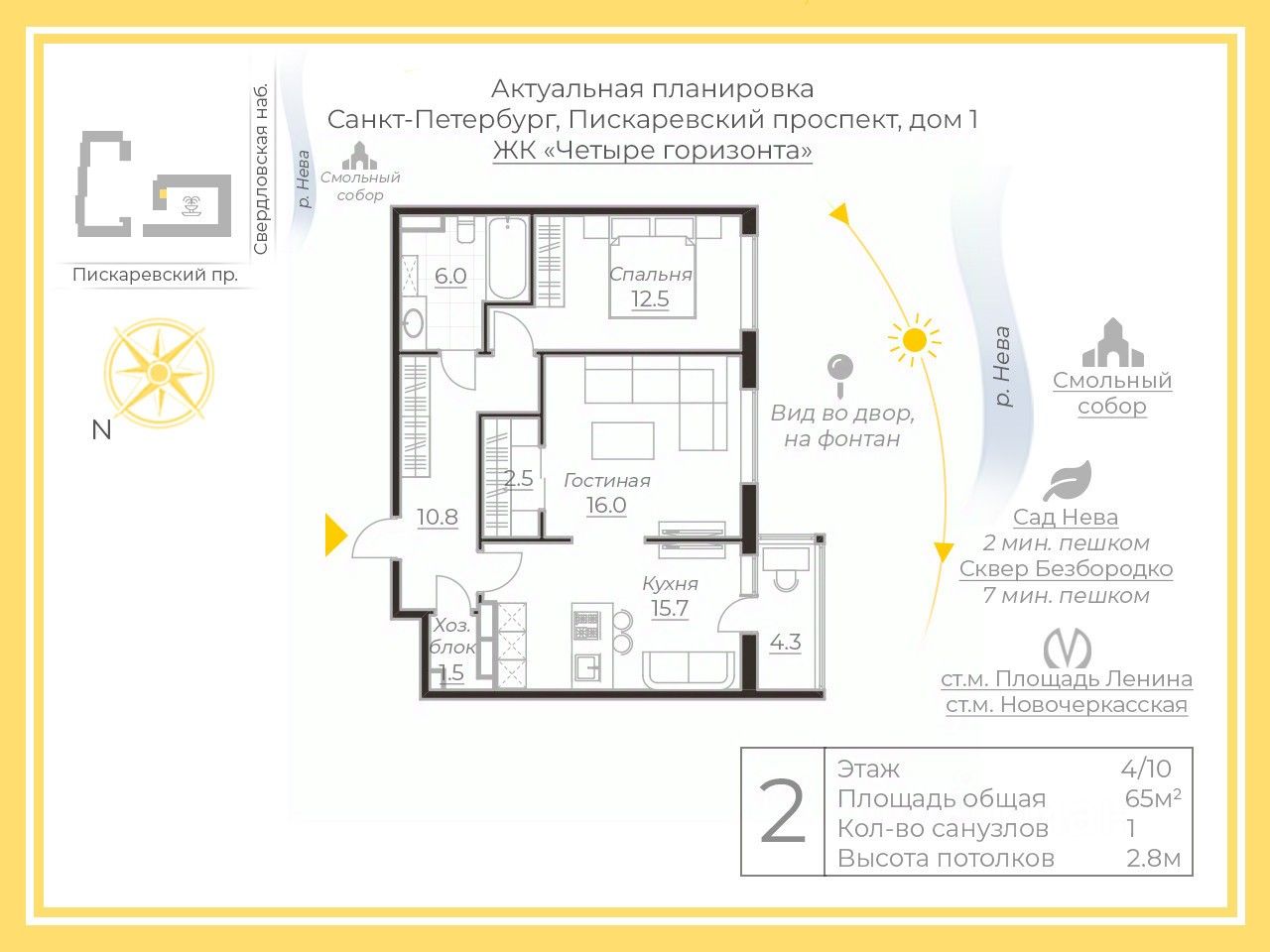 Дом полностью заселен с 2017 года и все соседи уже проввели ремонтные раьботы. Т.е. вы заедете в новый и уже обжитой дом. По внешнему фасаду дома есть все необходитое в обычной бытовой жизни: и пекарни "Буше", и Аптека, цветочный магазин, продуктовый, студии пилатесс, йоги и балета, барбер шоп.
