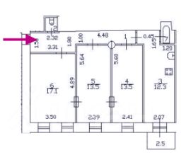 Все комнаты изолированные (17,1+13,5+13,5), кухня 12,3 кв.м, есть балкон.