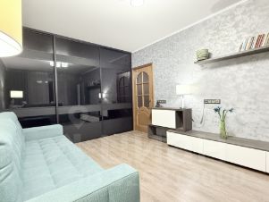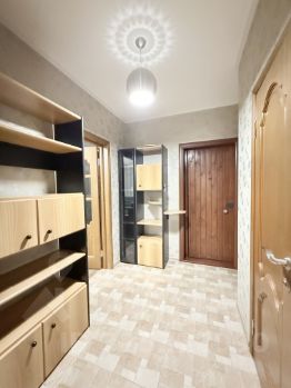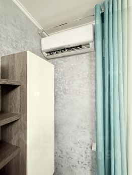 В комнате вместительный встроенный шкаф-купе до потолка, удобные раскладывающиеся диваны и изящная система навесных полок для хранения. Выведены розетки под телевизор.