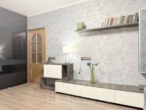 Выровнены стены с финишной шпаклёвкой и поклеены стильные обои.