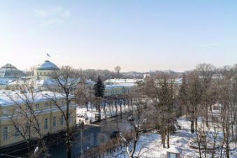 Из окон открываются чудесные виды на Таврический дворец , кроны Таврического сада, Исаакиевский собор и потрясающую башню Водоканала, которая особенно завораживает своей подсветкой в вечернее время.