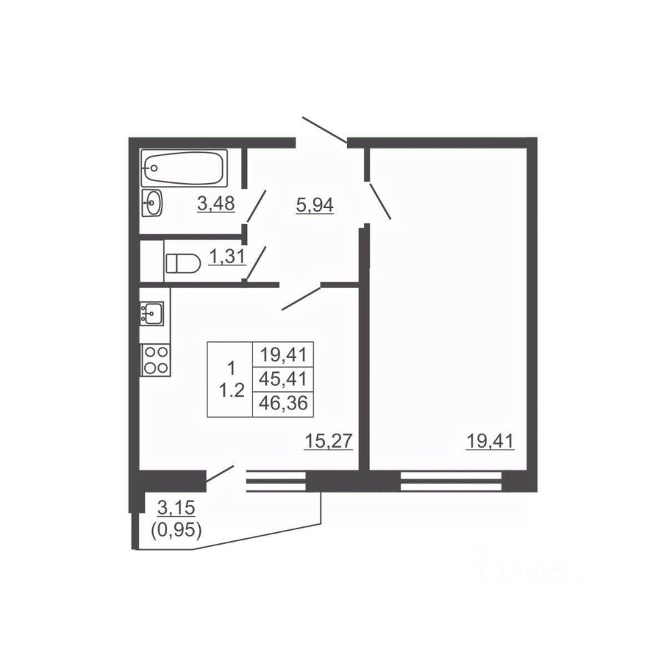Продается однокомнатная квартира в жилом комплексе "Тандем" от ГК СТОУН нa 10 этаже. Общaя площадь cоcтaвляeт 46.36 кв. м.