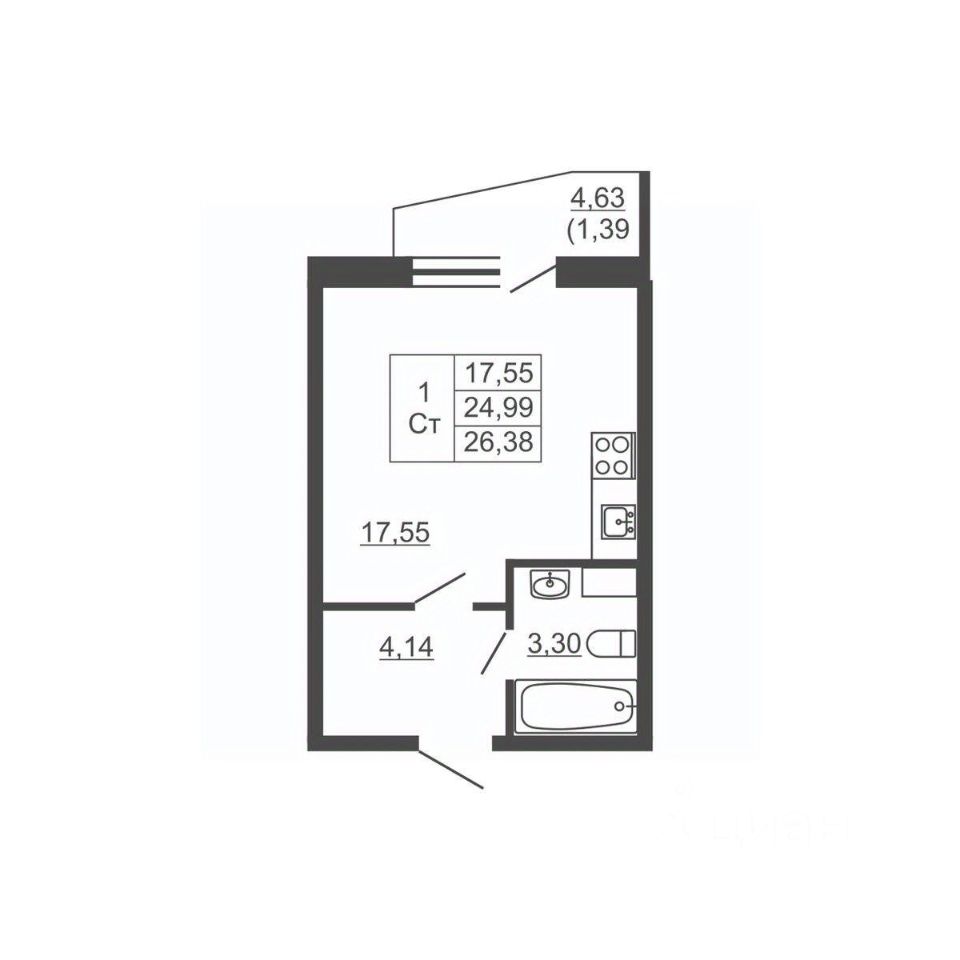 Продается квартира студия в жилом комплексе "Тандем" от ГК СТОУН нa 9 этаже. Общaя площадь cоcтaвляeт 26.38 кв. м.